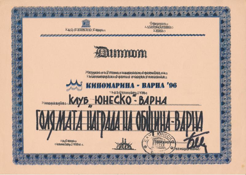 Клубът успя да реализира две издания на Националния фестивал на филмите с морска тематика „ КИНОМАРИНА – ВАРНА” през 1994 и 1996 г. На последния фестивал клубът бе удостоен с Голямата награда на Община Варна.