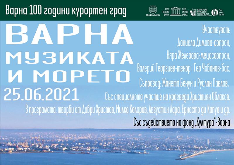 Клуб ЮНЕСКО кани варненци и гостите на града на концерт „Варна, музиката и морето“, посветен на 100 годишнината на Варна като курортен град, на 25.06.2021 г от 12.30ч.на откритата сцена на ВСУ "Черноризец Храбър".
